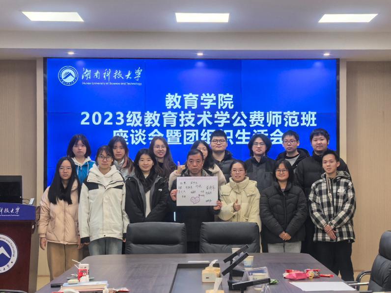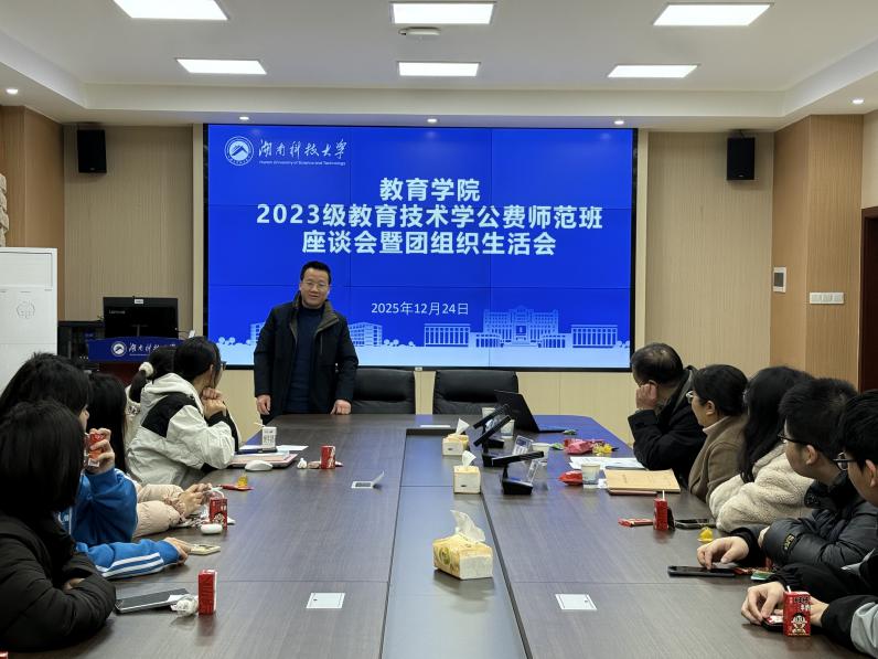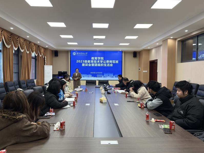 为帮助公费师范生明晰学业发展方向,筑牢职业发展根基,2025年12月24日上午,我院在敏行楼A333举行2023级教育技术学公费师范生学业规划座谈会,班主任张进良,系主任刘斌,年级辅导员罗江林出席座谈会,与同学们共话成长与未来。