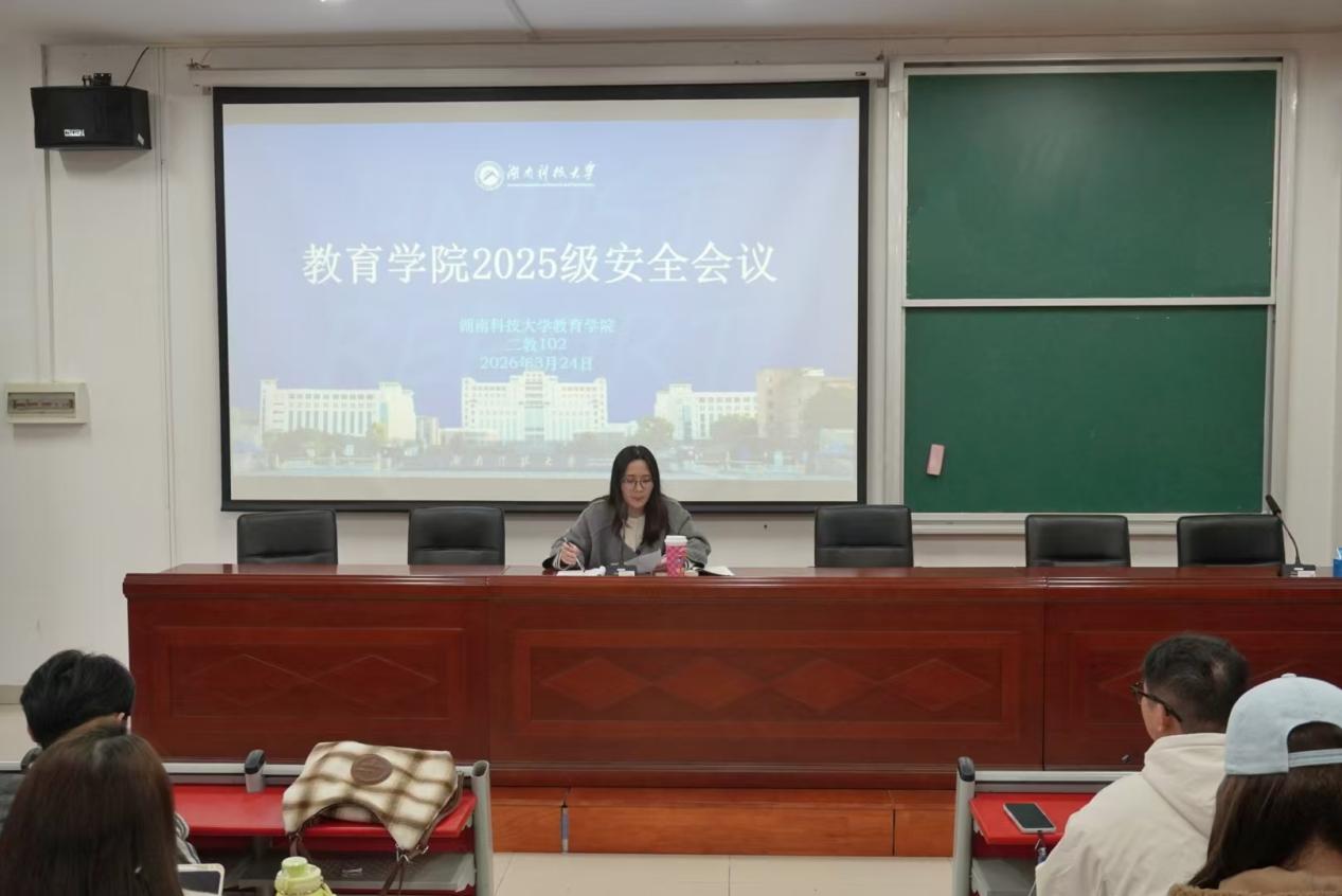 为强化安全意识,明确学业发展与日常管理要求,3月24日,教育学院于雨湖校区第二教学楼101教室召开2025级研究生安全会议暨第二次全体研究生大会。2025级辅导员谢斯琪主持会议,2025级全体研究生参会。