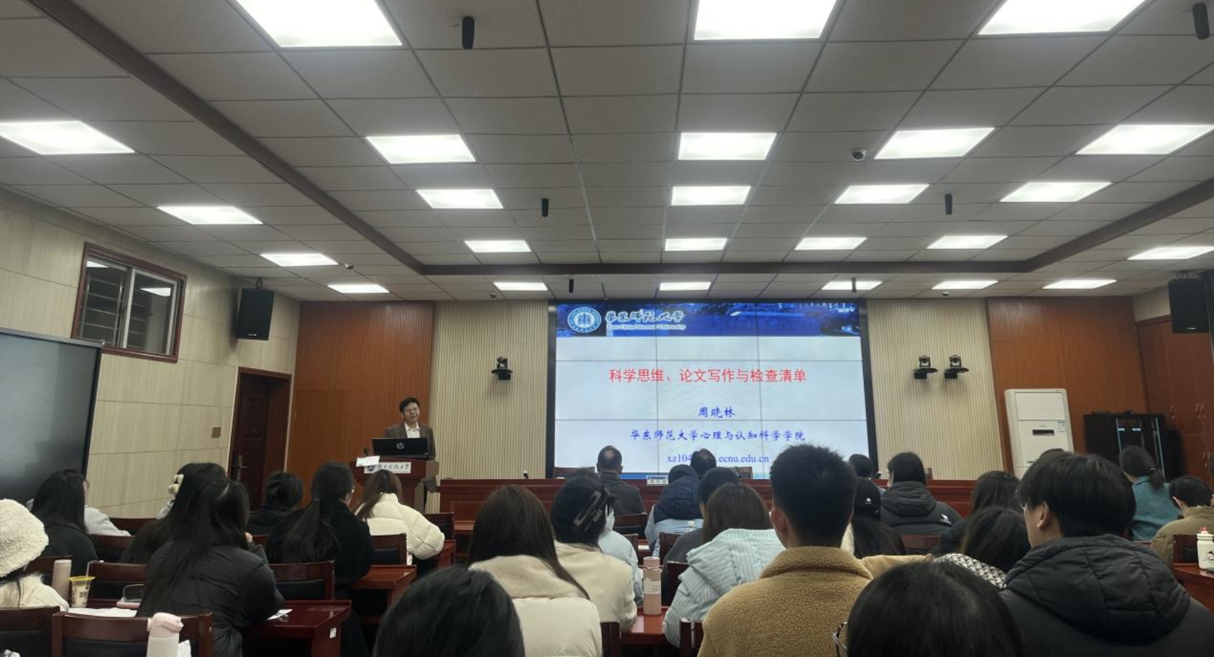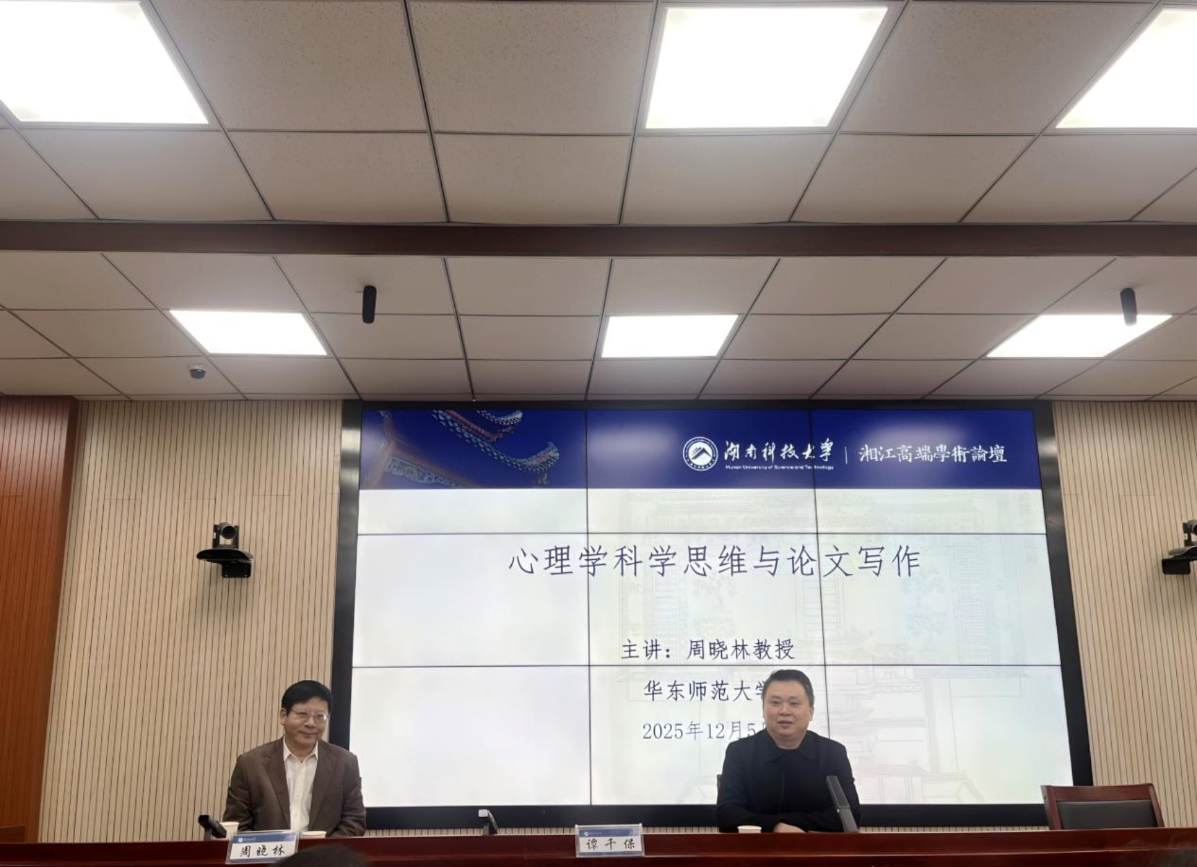 12月5日上午,华东师范大学心理与认知科学学院院长周晓林教授应邀做客我校“湘江高端学术论坛”,于第八教学楼310会议室作题为“心理学科学思维与论文写作”的专题讲座。讲座由教育学院院长、师范学院院长谭千保主持,校内师生积极参与。
