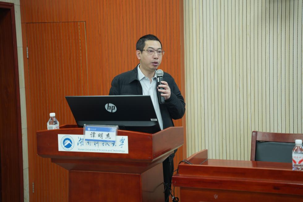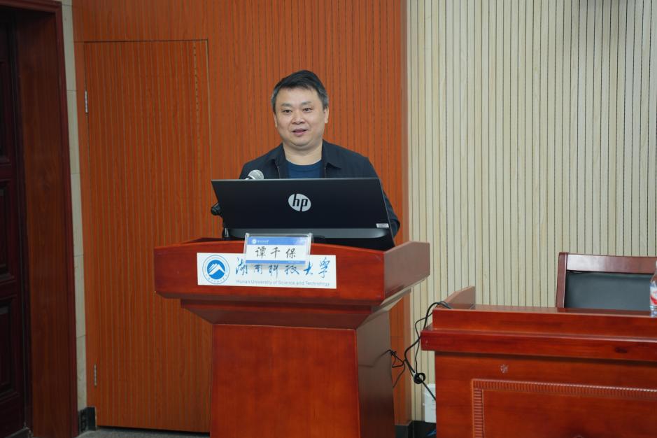 教育学院院长、师范学院院长谭千保致欢迎辞。他简要介绍了湖南科技大学及其教育学科的发展情况,并指出,教育数字化转型为信息科技教师专业能力发展提出了新的、更高的要求。本次会议正是顺应时代需求而召开,旨在回应数字化变革带来的新课题,汇聚各方智慧,凝聚共识、共商发展。