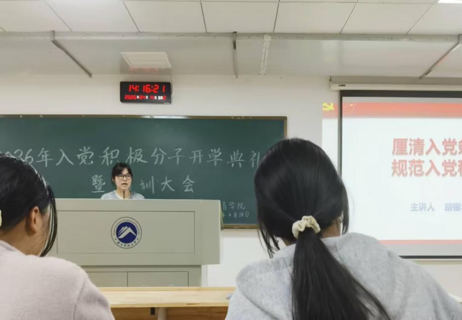 胡银华围绕党员发展与党性修养主题开展首次授课。她要求学员严守培训纪律,认真学习党章党规,同时引导大家坚定理想信念,以实际行动积极向党组织靠拢,努力成长为合格的入党积极分子。院党建会副书记蔡梦璇勉励全体积极分子在学习与生活中发挥先锋模范作用。