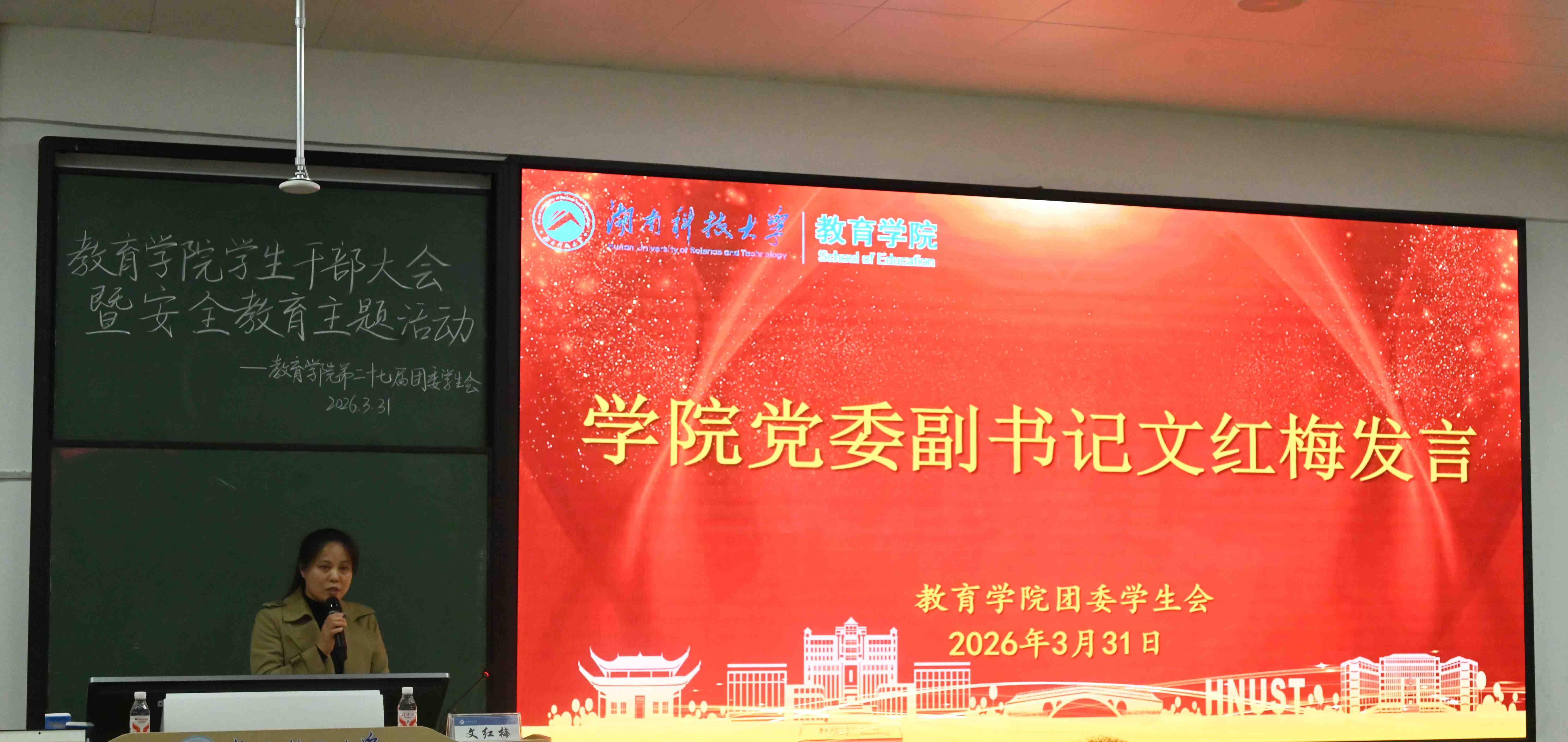 为进一步强化学生干部的责任担当意识,明确新学期工作方向,3月31日,教育学院在第八教学楼101教室召开2025-2026学年第二学期第一次学生干部大会。院党委副书记文红梅、团委书记张礼林、辅导员胡银华出席,第二十七届团委学生会全体学生干部参加会议。
